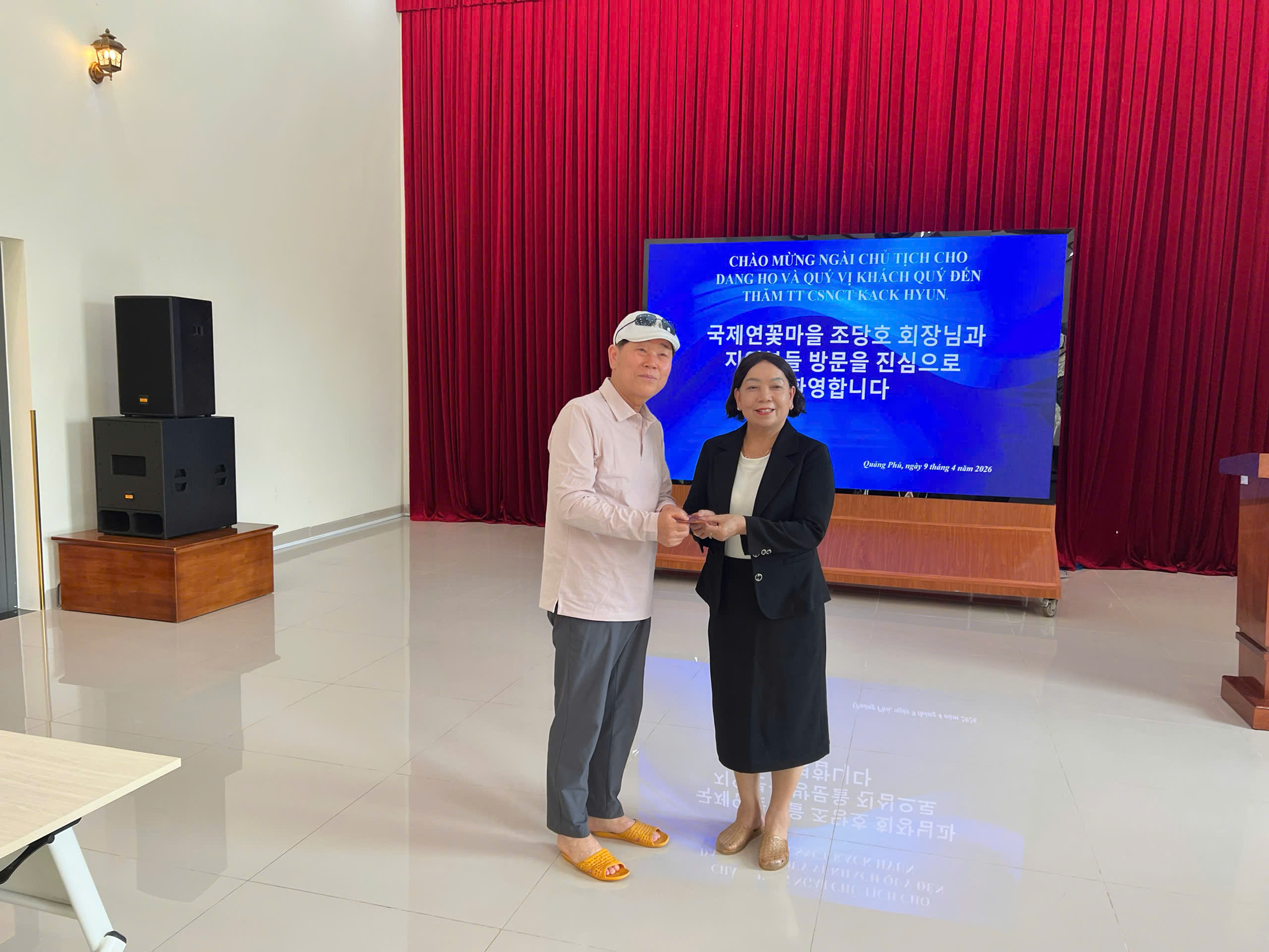 Ngày 9 tháng 4 năm 2026. Chủ tịch Cho Dang Ho cùng phu nhân và các vị khách quý đến thăm tặng quà tt csnct Kack Hyun.
